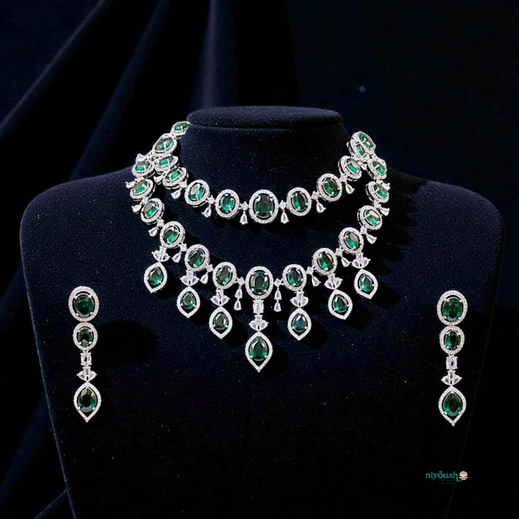 This is an artificial jewellery set which includes a necklace and two earrings.